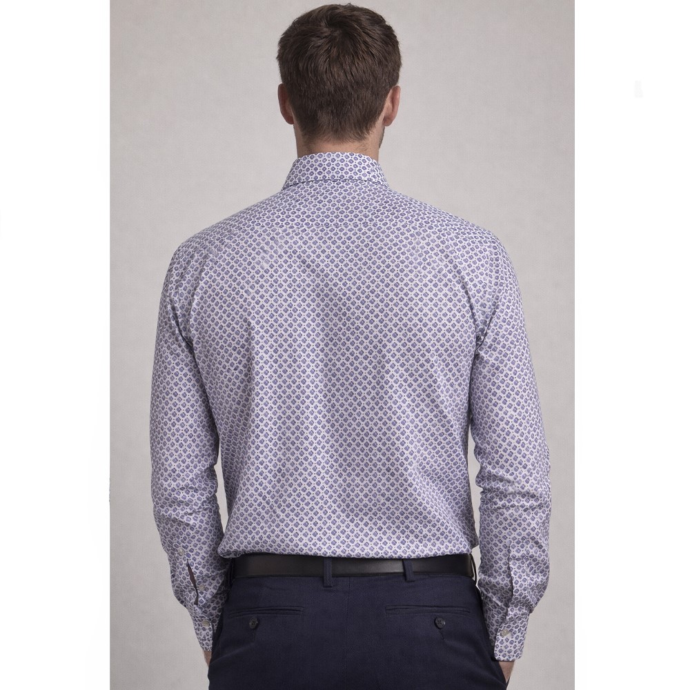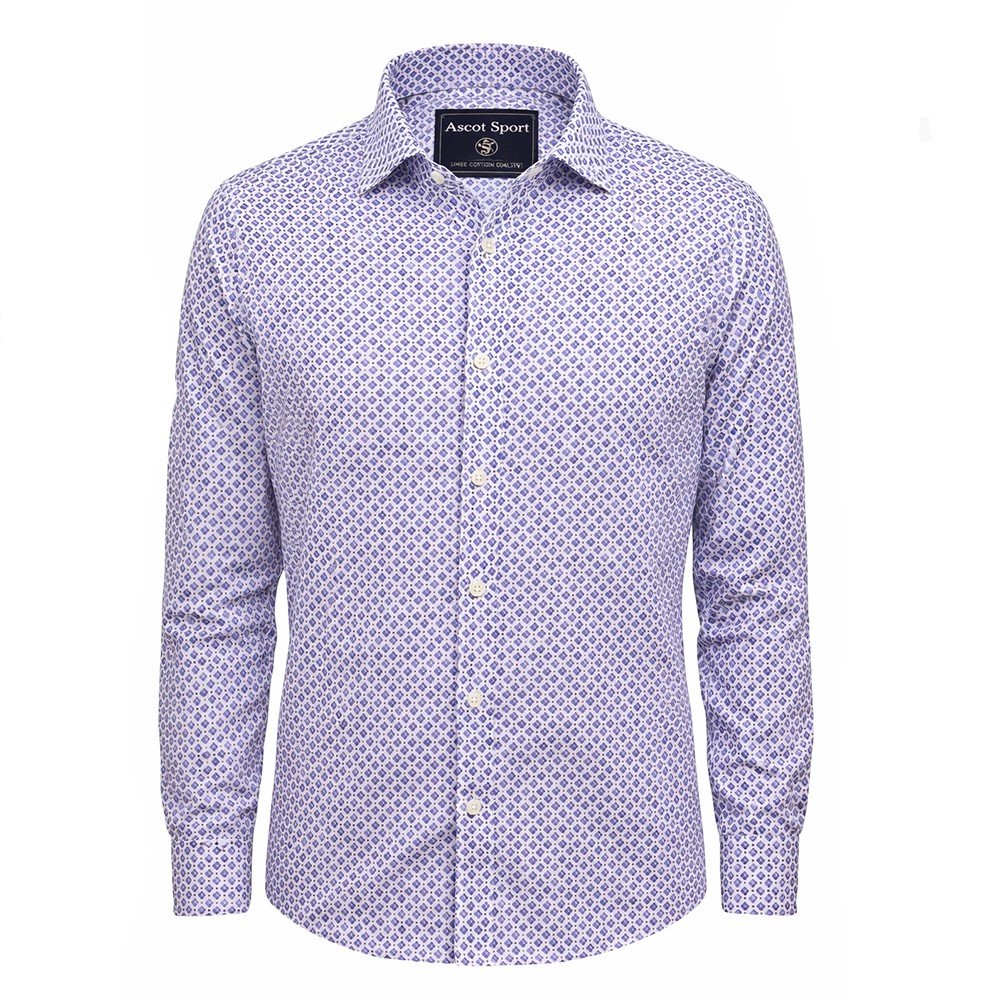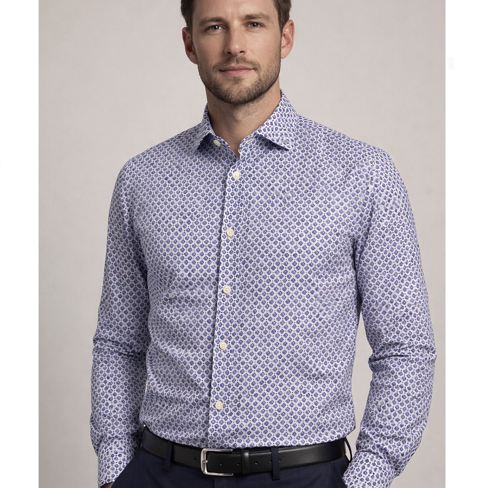 Elegante e contemporanea, questa camicia Ascot Sport è realizzata in puro cotone di alta qualità, pensata per offrire comfort, stile e versatilità in ogni occasione. La raffinata fantasia geometrica blu su fondo chiaro dona carattere al capo mantenendo un look sofisticato e facile da abbinare.