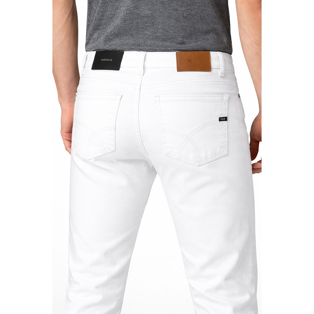 eans uomo GAS in denim bianco dal design moderno e pulito, perfetti per un look contemporaneo e versatile. Realizzati con materiali di qualità, offrono una vestibilità confortevole e una linea slim che valorizza la silhouette senza rinunciare alla libertà di movimento.