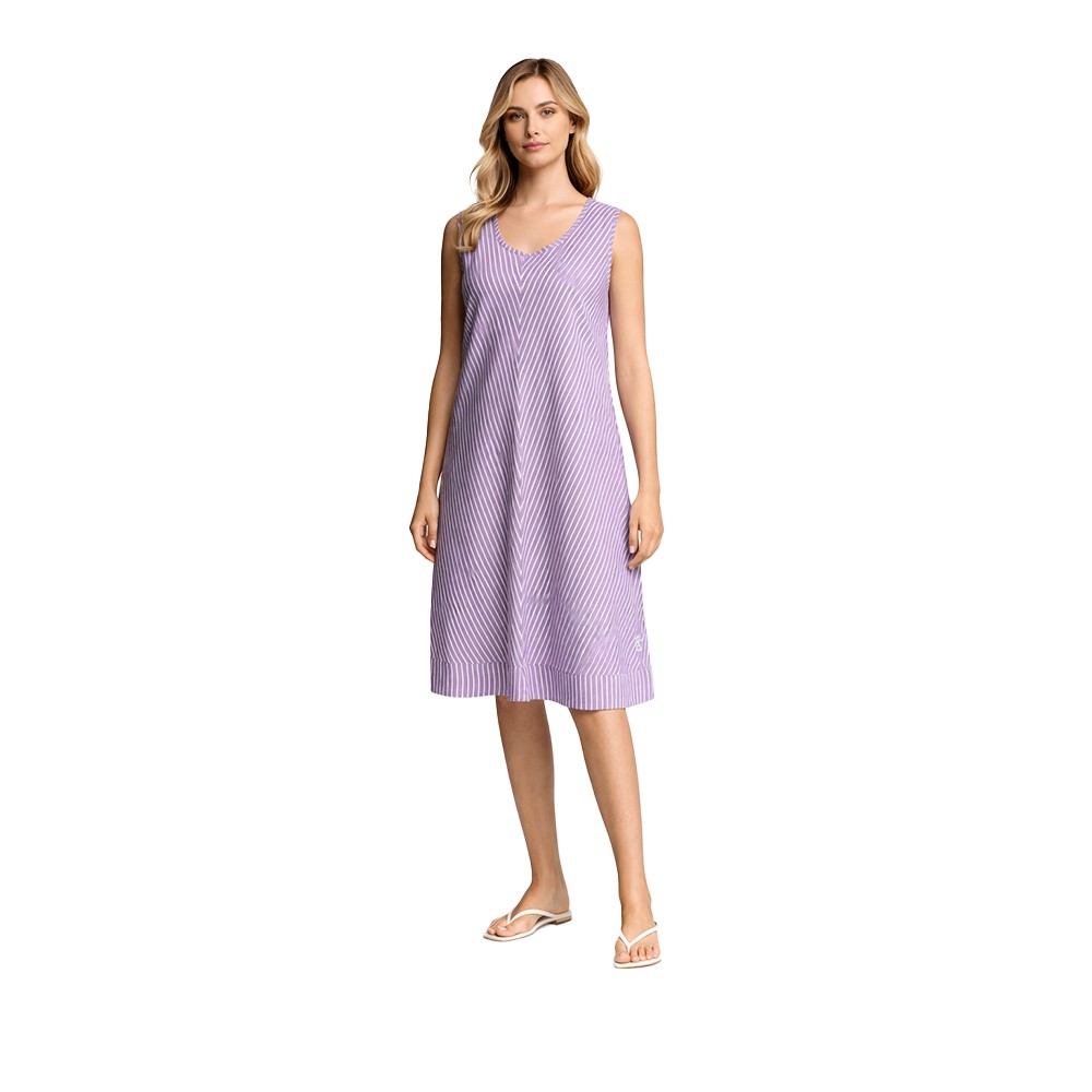 Iconique Abito midi smanicato donna a righe in Viscosa e Lino Scarlet ic26-032 viola