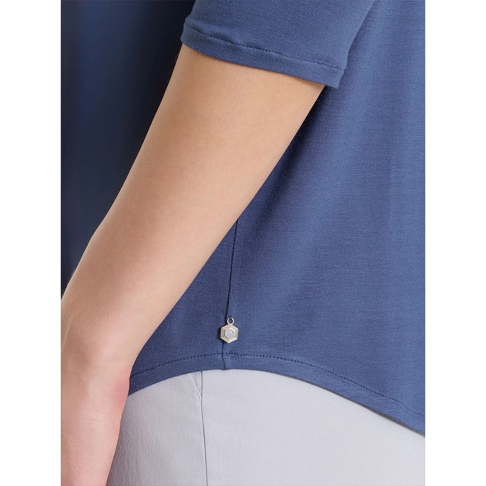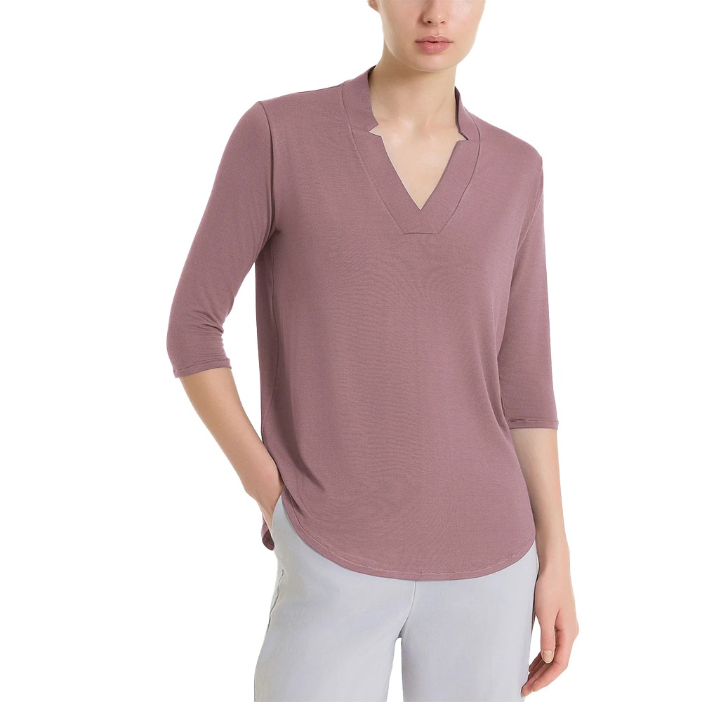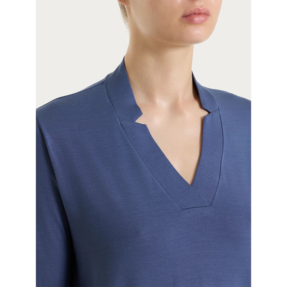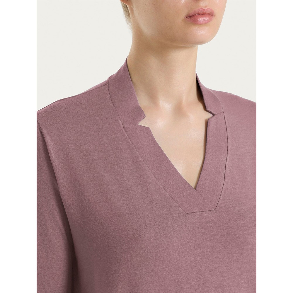Maglietta con scollo a V con delicati spacchetti per definirne maggiormente l’apertura.